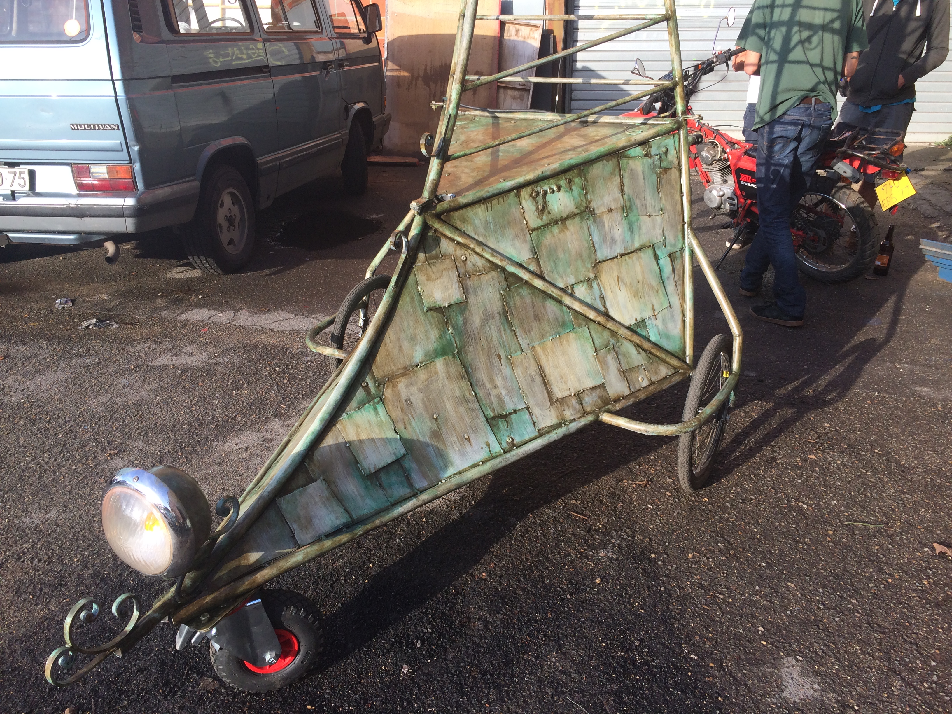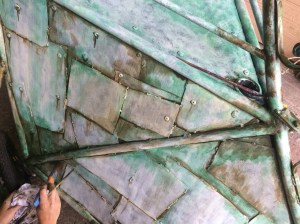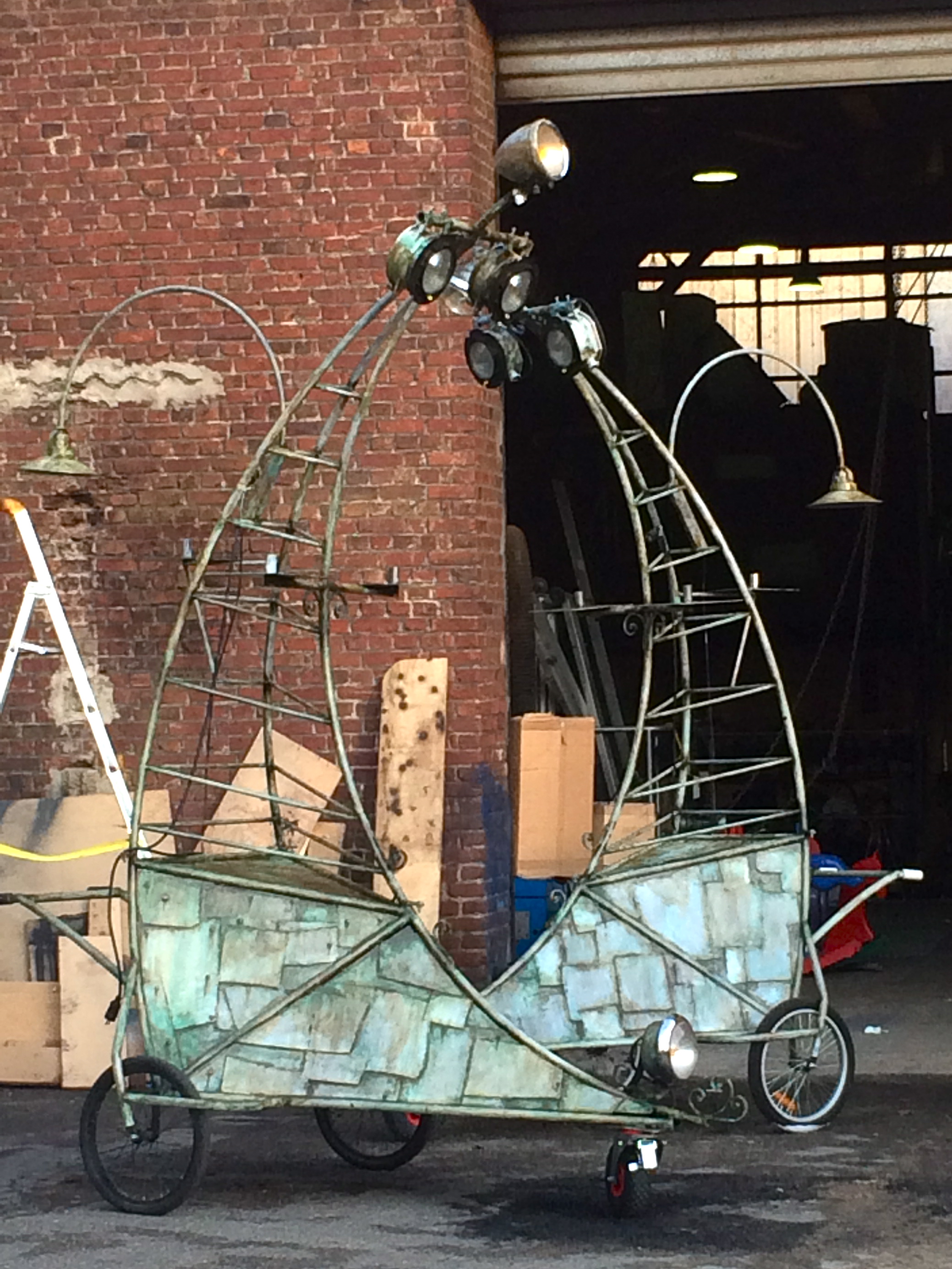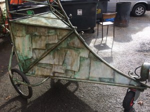 Patine rouille oxydée sur 2 chars pour la création La Parade amoureuse de la compagnie Remue-Ménage